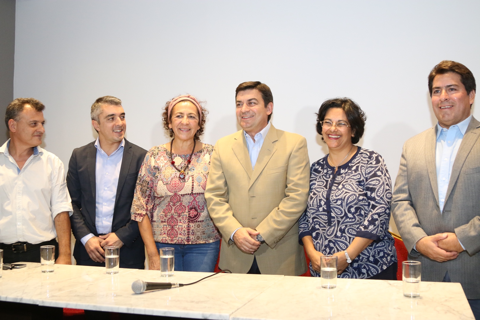 El candidato a gobernador de Mendoza, Omar De Marchi, junto a su vice, Susana Velázquez, presentaron este tarde en un hotel céntrico, a los precandidatos Verónica Bunsters en Malargüe, Sebastián Bragagnolo en Luján de Cuyo, Raúl Villafañe en Las Heras y Francisco Tejera en Tupungato.