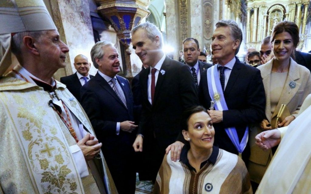 En su peor momento y en una Plaza de Mayo totalmente vacía, donde había solo guardias policiales y una gran pantalla gigante que proyectaba a la nada… el presidente Mauricio Macri participó esta mañana del tradicional Tedeum en la catedral metropolitana por el 209° aniversario de la Revolución de Mayo, que fue celebrado por el arzobispo de Buenos Aires y primado de la Argentina, cardenal Mario Poli, quien pidió ir a “un gran pacto nacional dejando de lado los intereses sectoriales” de cara a las próximas elecciones nacionales de octubre.