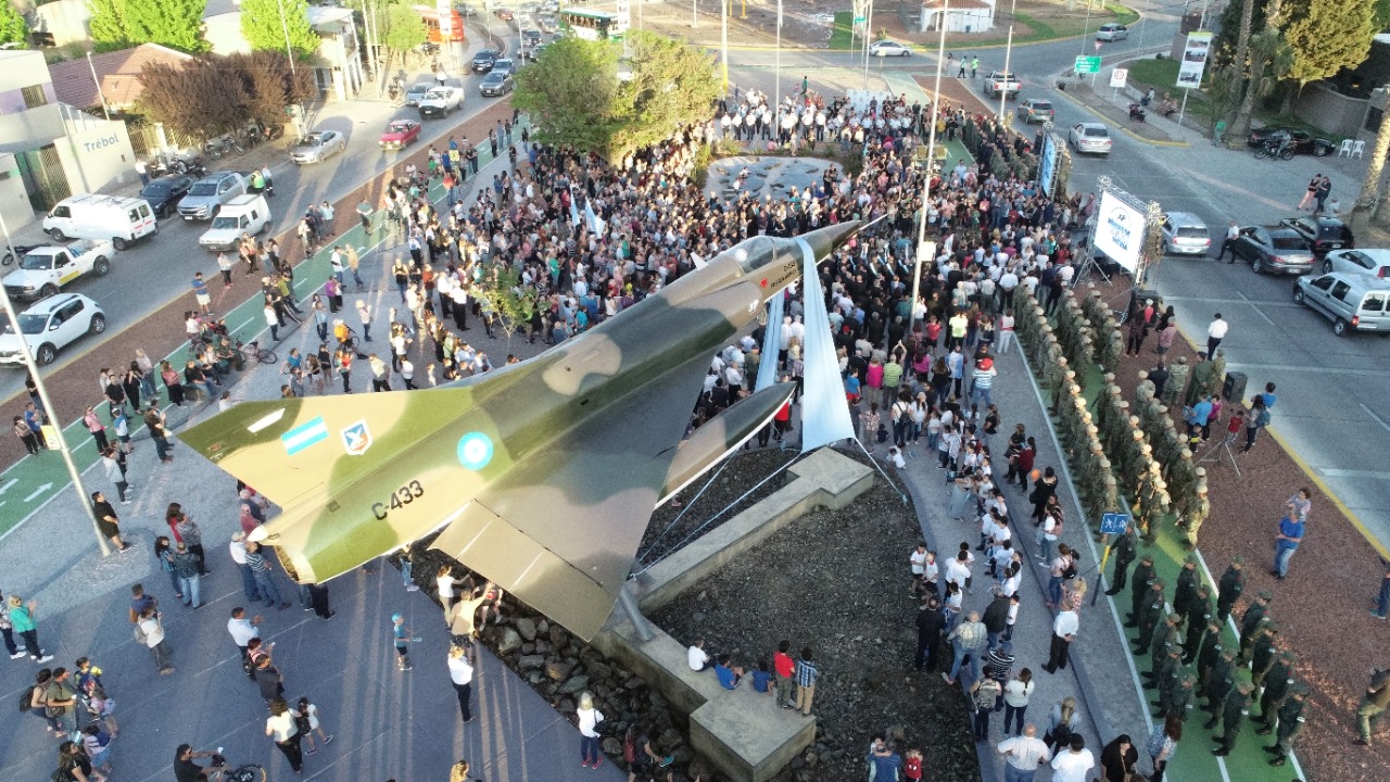 El homenaje, cristalizado en el monumento público, se realizó a través de un acto protocolar que encabezaron diferentes organizaciones pertenecientes a la causa, y contó con la actuación de Lisandro Bertín, con la presencia de la Banda de Música de la IV Brigada Aérea, quienes entonaron el Himno y la Marcha de Malvinas. También participaron las formaciones militarse de la Fuerza Aérea, del Ejército Argentino y de Gendarmería Nacional.