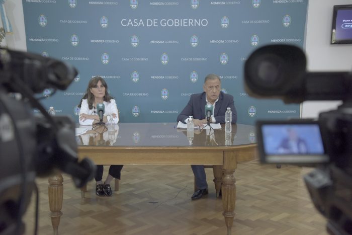 La ministra de Salud de la provincia de Mendoza, Ana María Nadal y el ministro de Seguridad, Raúl Levrino, fueron los encargados de dar detalles sobre el primer caso confirmado en una conferencia de prensa de este sábado a la tarde.