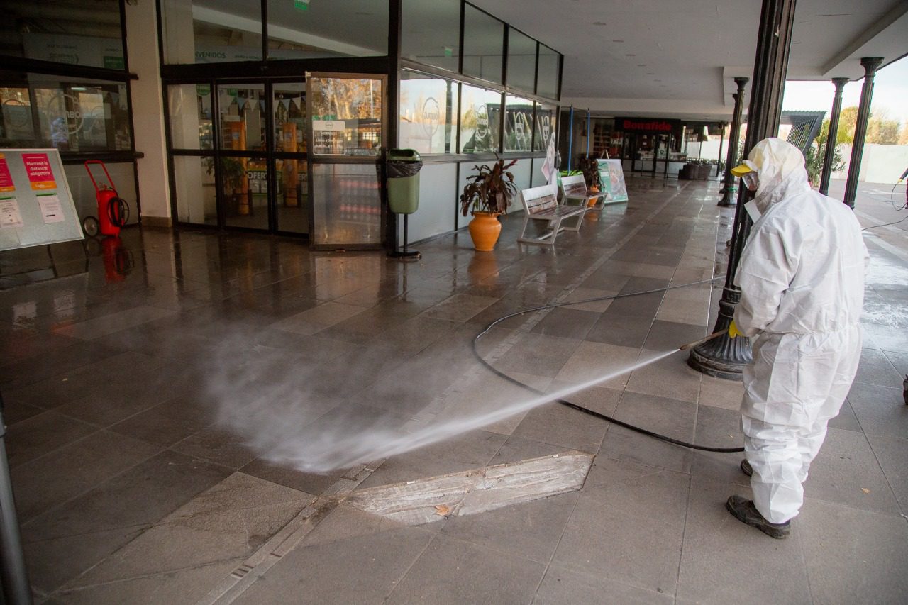 Frente a esta preocupante situación, el Municipio de Luján de Cuyo reaccionó inmediatamente y desplegó un intenso operativo de desinfección en la zona de influencia (playa de estacionamiento del hipermercado, interiores y zonas lindantes a la propiedad).