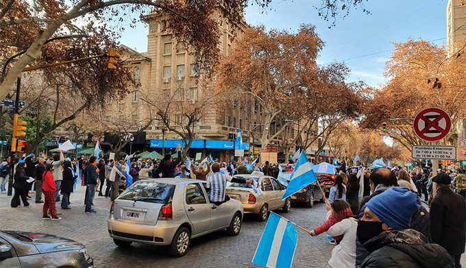 En ese mismo jueves, en la Capital mendocina, también se sumó el «Banderazo» que convocó en las calles a más de 400 personas sin ningún distanciamiento social y los participantes llevaban tapabocas pero en su mayoría no hicieron el uso correcto ya que no le cubría la boca y la nariz.