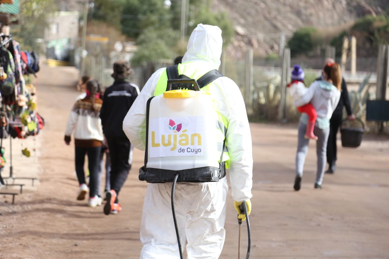En la jornada de hoy, se hizo mucho foco en la prevención sanitaria a través de un fuerte operativo de desinfección en toda la zona turística de Luján de Cuyo, con 10 frentes de ataque que incluyeron al personal de Servicios Públicos con camiones y mochilas pulverizadoras que recorrieron todas las calles, viviendas y negocios del área. También se sumaron 15 sanitizadores automáticos para el uso de los visitantes y vecinos. Además efectores municipales distribuyeron en cada casa y comercio una botella de alcohol en gel de 250cc.