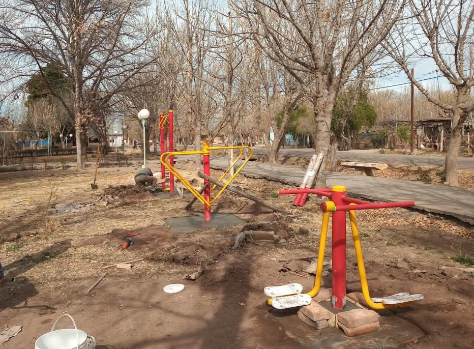 La plaza Ezequiel Tabanera de Las Malvinas se sumó al programa de juegos saludables que está instalando el Municipio de San Rafael en diferentes distritos.