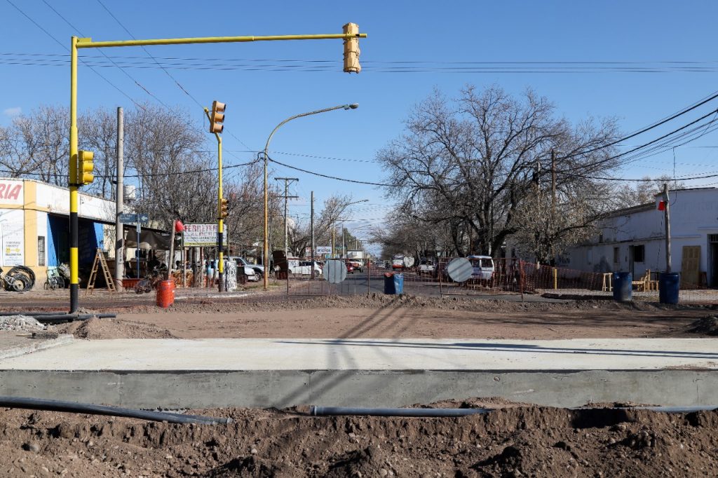 Los trabajos están muy avanzados, luego de erradicar el viejo pavimento, se preparó la base y ahora se coloca el hormigón. Una vez cubierta la intersección se aguardará que fragüe el material para después habilitar el tránsito.