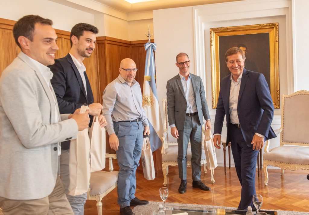 Esta mañana, el Gobernador Rodolfo Suarez, recibió al CEO de Bioceres, Federico Trucco. Estuvo acompañado por los ministros de Economía y Energía, Enrique Vaquié; de Haciendas y Finanzas, Víctor Fayad; el Presidente de la Agencia Mendocina de Innovación, Ciencia y Tecnología, Gabriel Fidel y por el Diputado Nacional por la provincia de Buenos Aires, Fabio Quetglas.