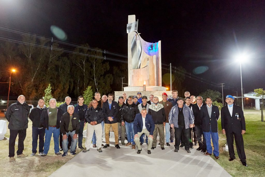 Con la llama motiva iluminando el monumento que recuerda a los soldados mendocinos fallecidos en la guerra, la plaza recibió a más de 30 veteranos de Malvinas de dicha asociación, que se hicieron presentes junto a sus familias para recordar el 2 de abril y a sus compañeros de armas.