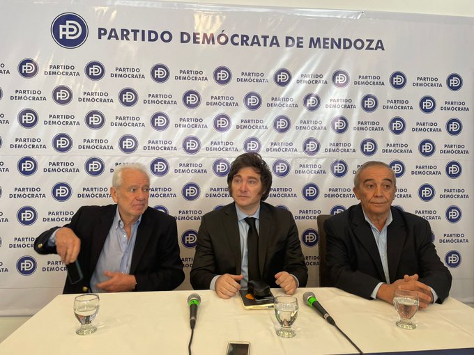 En la conferencia de prensa, Milei estuvo acompañado del presidente local del PD, Roberto Ajo, y de ese espacio político pero en su índole nacional, el ex candidato a gobernador Carlos Balter.