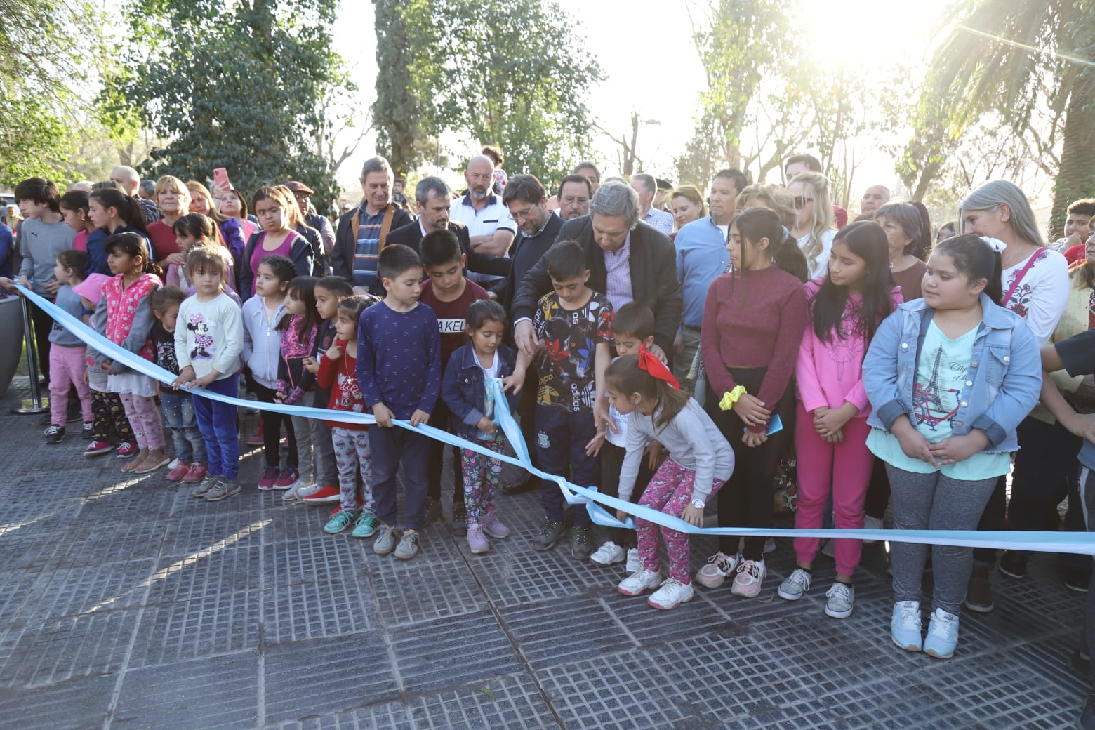 Luego – a pocas cuadras del predio deportivo – el intendente inauguró la renovada plaza José Salas, un histórico espacio de encuentro de Cuadro Nacional y que ahora luce totalmente transformada. Además de las modernas luces led que la iluminan, la plaza tiene juegos infantiles para que disfruten los más peques, un flamante parquizado, riego por aspersión y mobiliario urbano.