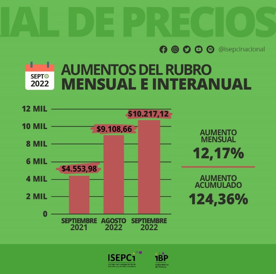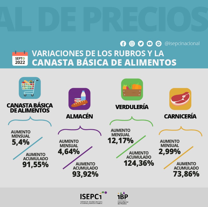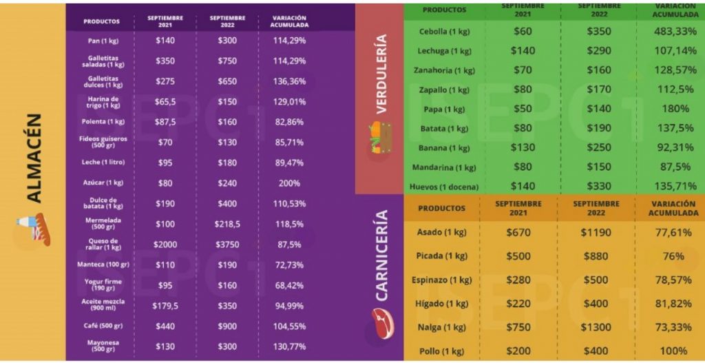 De acuerdo al relevamiento del ISEPCi, “una familia de dos adultos/as y dos hijos/as en septiembre de 2021 necesitaba para adquirir sus alimentos indispensables para un mes, $28.803,84 y en el mismo mes de este año requirió $55.172,38”.