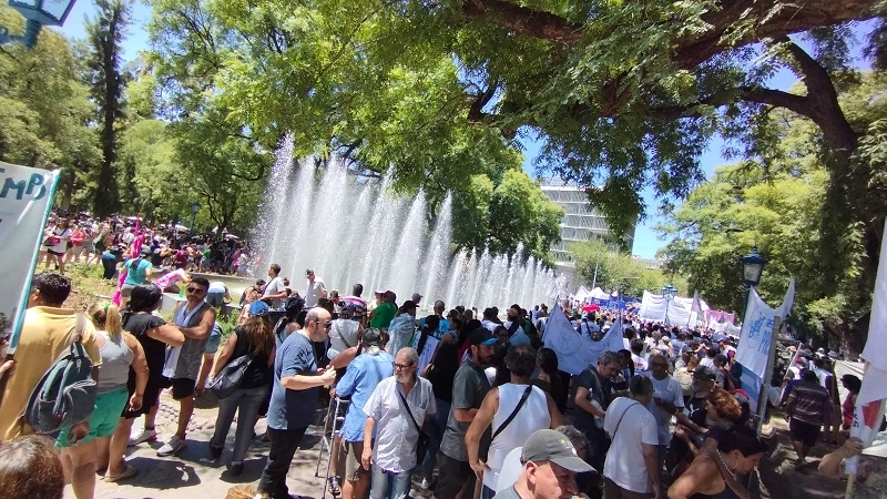 Mendoza, que ostenta el extraño récord de ser la segunda provincia en donde Milei le sacó más ventaja al candidato Massa de Unión por la Patria, y sin la adhesión efectiva del gremio del transporte SIPEMOM, se especulaba una partición menor, sin embargo, tanto el Paseo Sarmiento como otras plazas y lugares de concentración, reúnen a miles.