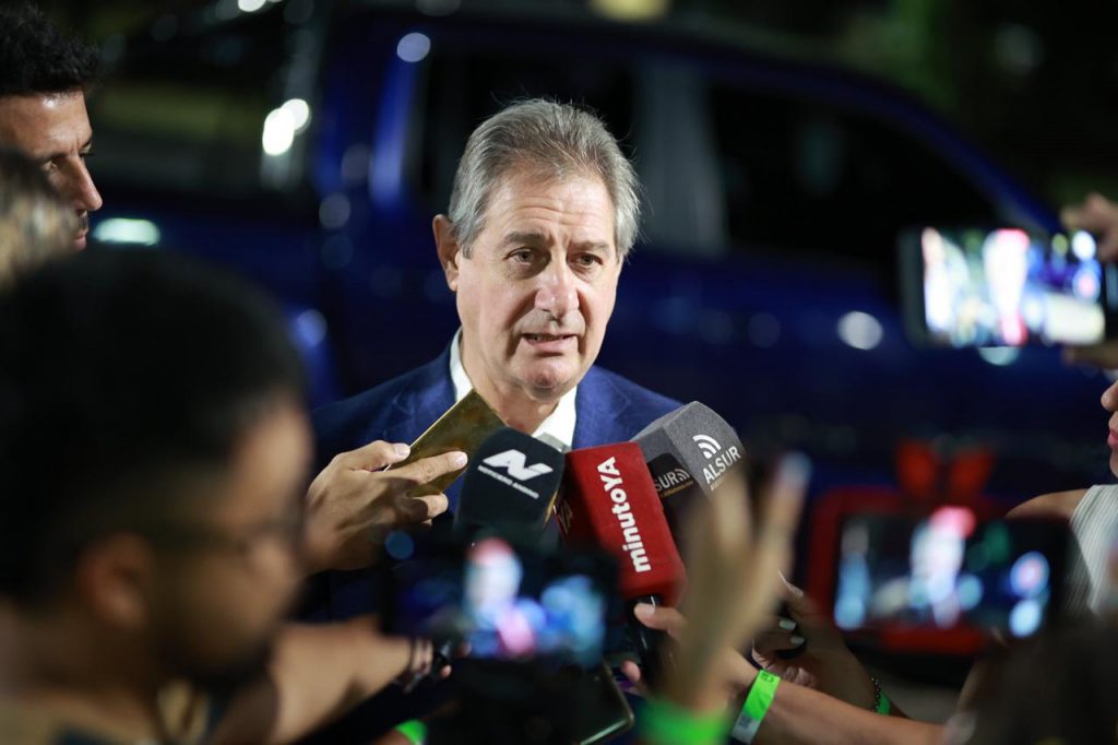 El intendente Omar Félix habló con la prensa en la previa de la Fiesta de la Vendimia de San Rafael, en el marco de una noche impecable, sin alertas meteorológicas como las anteriores.