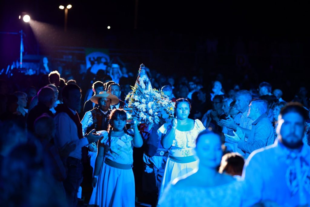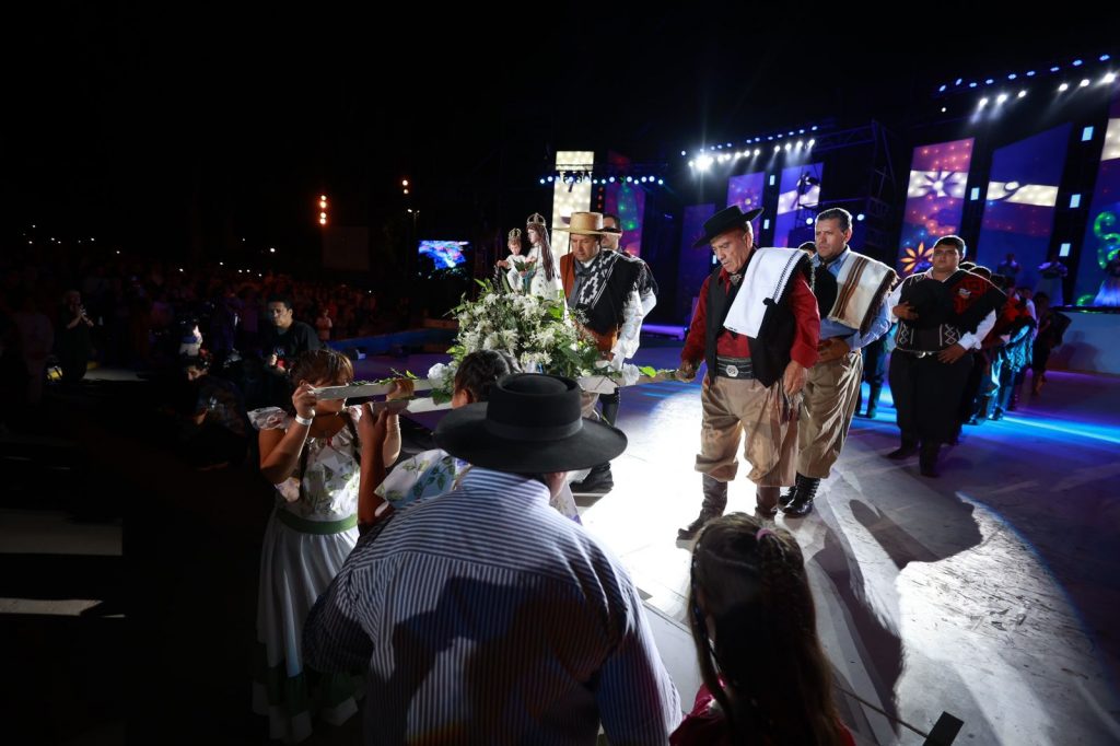 En la previa, hubo tiempo para el folclore, en las voces de Chicha Rosales, Los Nahueles y Los Hacheros. También se realizó la Bendición de los Frutos, el ritual religioso por el que se pide protección a los agricultores y su cosecha, mediante el tradicional “golpe de reja”.