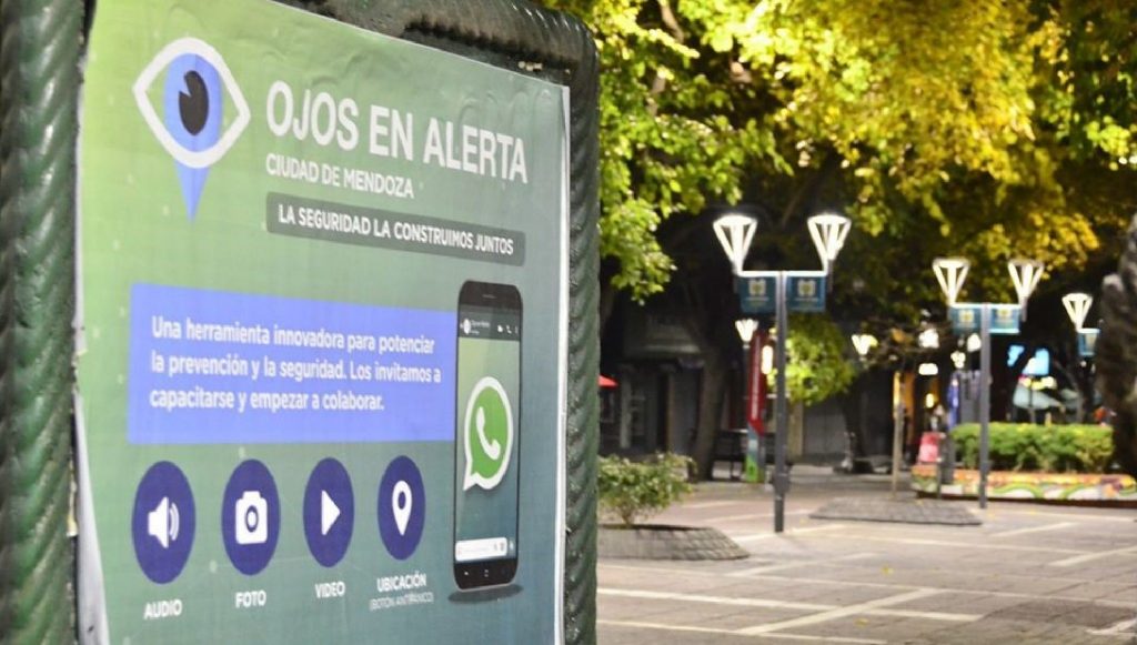 Por otro lado, desde marzo del 2020, la Municipalidad de la Ciudad de Mendoza presentó Ojos en Alerta, una herramienta para potenciar la prevención y la seguridad, mediante la colaboración conjunta entre vecinos y el Centro de Visualización, a través de Whatsapp. Así fue que, en mayo del mismo año, la Muni puso en funcionamiento el programa que ha colaborado exitosamente hasta estos días en la prevención de un sinfín de delitos, resguardando la seguridad ciudadana en la capital mendocina.