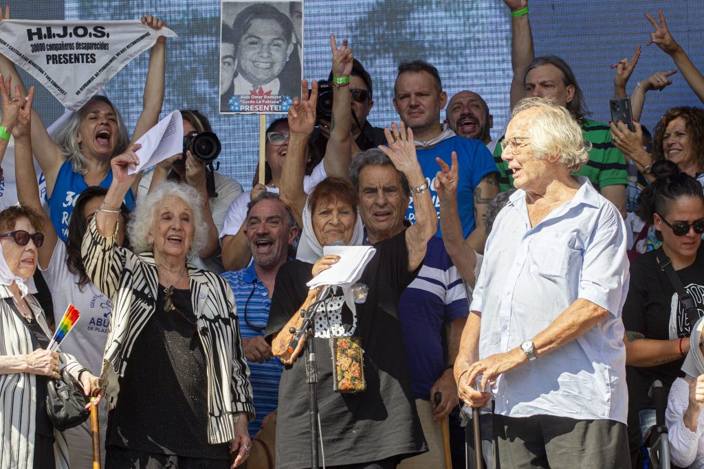 Y así se llegó a esta primera plaza en tiempos abiertamente negacionistas. Si durante el menemismo se intentaba ignorar o restar importancia al reclamo histórico, y durante el macrismo hubo tibios y derrotados intentos por poner en cuestión algunos de los sentidos reconstruidos por el kirchnerismo, el de este 2024 es, por lo menos para muchas generaciones, el primero en un tiempo donde lo que intenta desde el Gobierno nacional es decididamente el cuestionamiento de la brutalidad del terrorismo de estado, su equiparación con acciones de organizaciones de la sociedad civil y una disputa abierta por la interpretación de los años más dolorosos de la historia argentina.