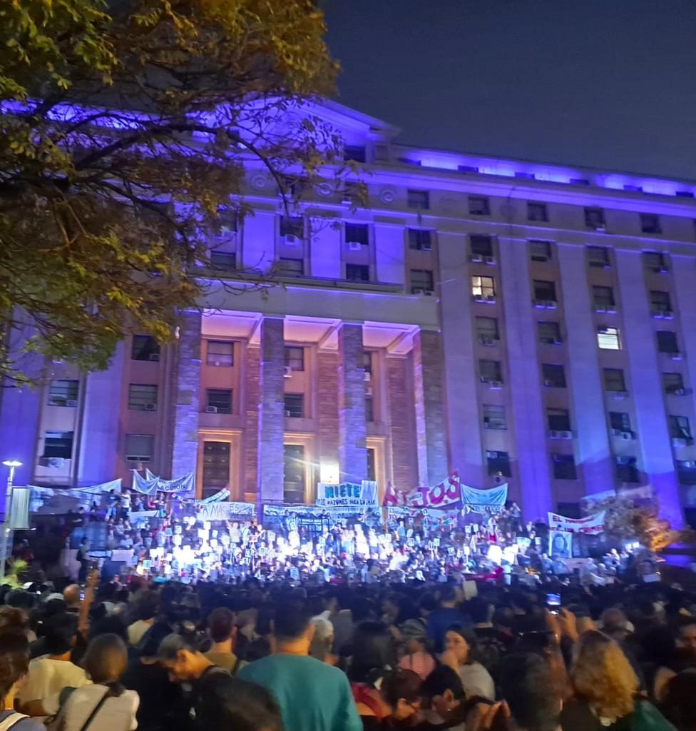 “No podemos negar que hay una parte de la juventud que vivió toda su vida consciente con gobiernos que no cumplieron con lo que habían dicho y que nos defraudaron como juventud, entonces es entendible que encuentren un futuro en referentes que usan esa bronca y ese enojo contra los que nos fallaron” agregaron como diagnóstico de los tiempos que corren. Atrás suyo, sus compañeros y compañeras, recuperaban el hit mundialista de “abuela lalalalala” como un homenaje a las Madres y Abuelas, abriendo los corazones a la esperanza en el futuro.