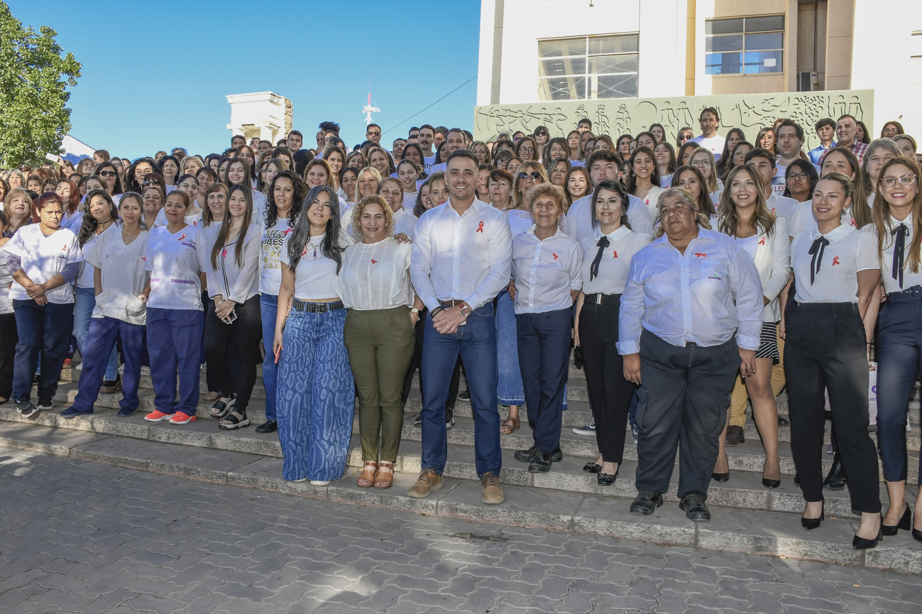A primera hora, empleados de la Municipalidad de Guaymallén se tomaron fotos usando la ya tradicional cinta rosa que representa la lucha contra el cáncer de mama. Hay que recordar que la OMS también estableció que todo el mes de octubre se lo llama el “mes rosa”, porque durante estos 31 días se concentran las actividades para tomar conciencia sobre la enfermedad.