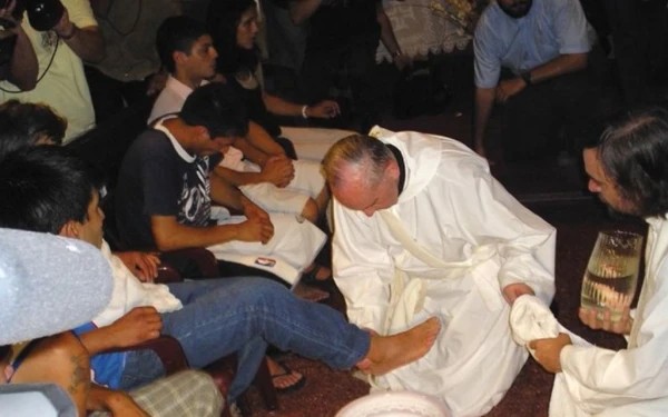 1.- EL LAVATORIO DE LOS PIES EN LAS CÁRCELES – Ver a un papa arrodillado lavando los pies a jóvenes reclusos el Jueves Santo del 28 de marzo de 2013, entre ellos dos mujeres, una musulmana serbia y una católica italiana, en la capilla del centro penitenciario para menores de Casal del Marmo en Roma, fue el primer gesto que hizo pensar que Francisco era un papa con un estilo diferente.