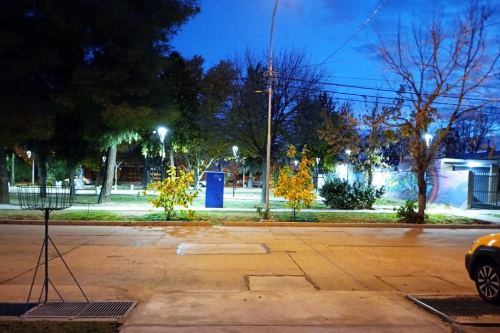 El Municipio de San Rafael sigue avanzando en la colocación de luminarias con tecnología led, esta vez en la plaza del barrio Sardi.