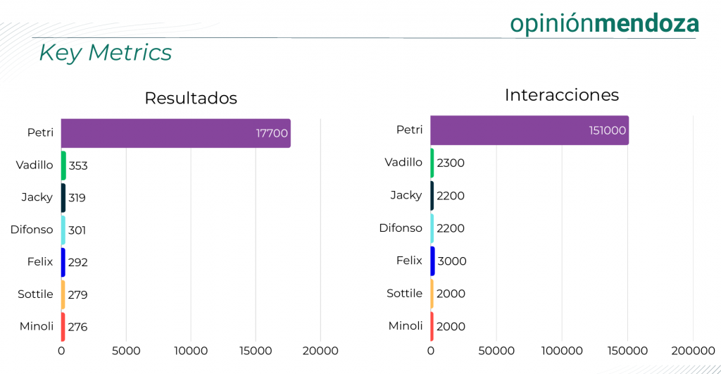 «El análisis demográfico muestra que la mayoría de los candidatos logran interpelar al público entre los 18 y 44 años, con excepciones como Petri (que se extiende hasta los 64) y Jacky (que también supera la barrera de los 44)», destacan desde Opinión Mendoza.