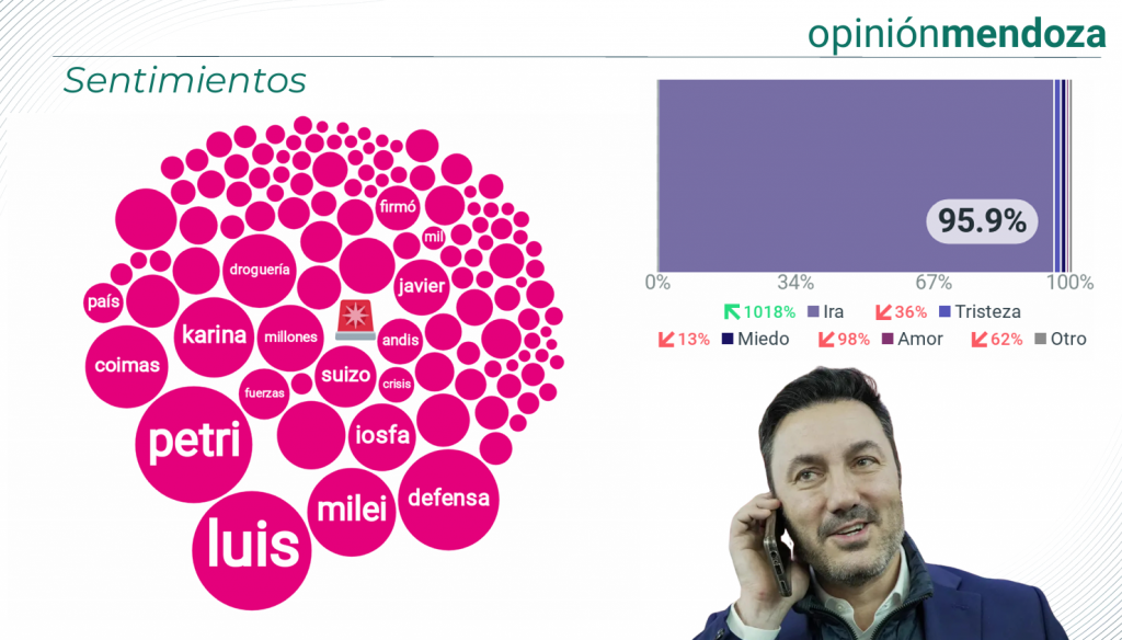 Según el reciente trabajo de la consultora Opinión Mendoza en base al movimiento digital de los candidatos mendocinos, el actual ministro de Defensa y candidato de la alianza Cornejo-Karina-Menem, Luis Petri no solo lidera en menciones e interacciones en redes sociales, sino que concentra casi toda la visibilidad en medios digitales. Sin embargo, ese predominio no se traduce en imagen positiva, sino todo lo contrario, en una ola de críticas que lo vinculan directamente con el escándalo nacional de los audios de coimas que vinculan a Karina Milei y los Menem, sumado al desastre que está dejando en la obra social de las fuerzas armadas IOSFA.