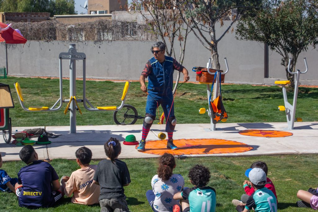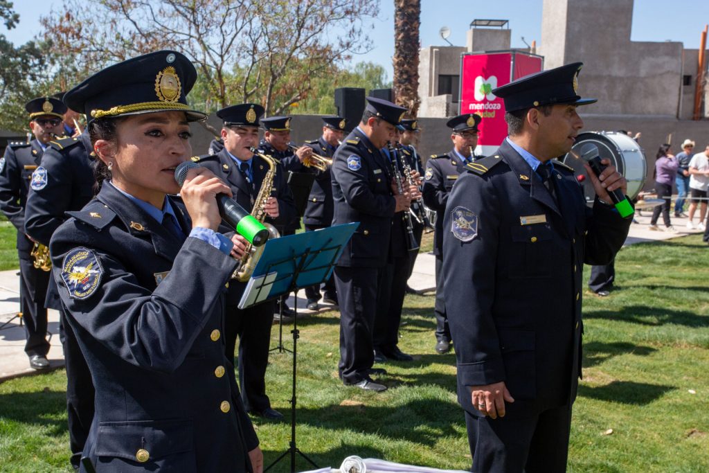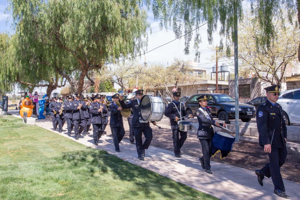 La banda de música de la Policía de Mendoza abrió la jornada con un repertorio que incluyó marchas patrias y piezas populares, aportando un marco musical especial a la celebración. Los asistentes, además, pudieron disfrutar de otras atracciones como personajes en sancos, malabaristas y burbujeros.