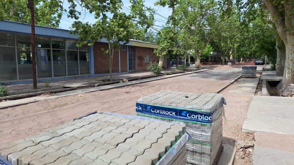 Actualmente se lleva adelante la colocación de adoquines en la segunda cuadra de calle Almafuerte, entre Coronel Suárez y Corrientes. Allí ya se habían ejecutado los contrapisos de hormigón y los cordones.