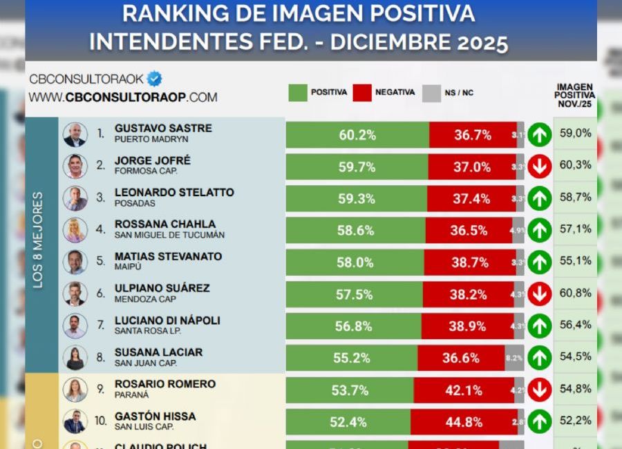 En diciembre, CB Consultora compartió el último informe de evaluación de gestiones municipales de todo el país, y el intendente de Maipù, Matías Stevanato se ubicó en el quinto lugar, mientras que, Ulpiano Suárez alcanzó la sexta ubicación.