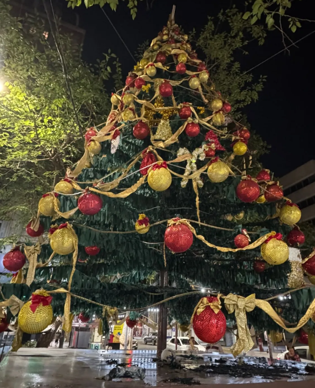 Un intencional incendio se produjo el viernes por la noche en la base del árbol de Navidad que decora la Peatonal Sarmiento de la Ciudad de Mendoza.