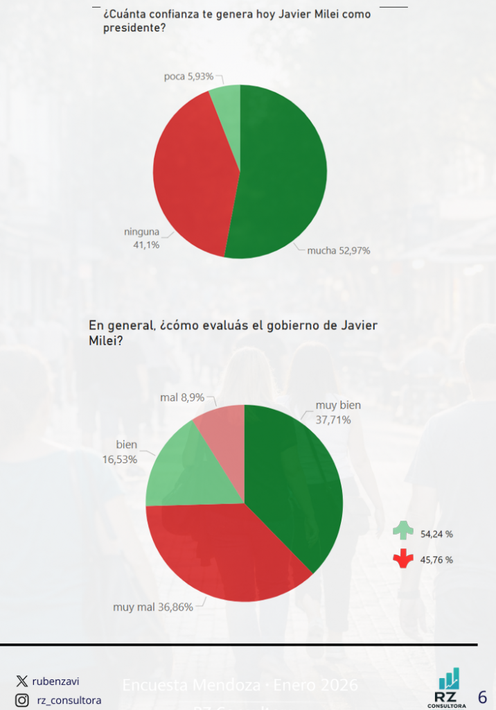 «Esto también se ve acrecentado en estos tiempos, en donde el clima que se ve luego de la salida de Maduro refleja también una polarización, esto lo vamos a mirar en alguna otra encuesta, pero esta polarización entre lo que es el mileísmo y el antimileísmo es muy fuerte, y esto también va a marcar en la agenda una cuestión importante, ya que se vienen algunas leyes y algunas reformas, como por ejemplo la laboral, que también va a incidir en los reclamos sociales en la Argentina» cierra Rubén Zavi ante la consulta de BienCuyano.