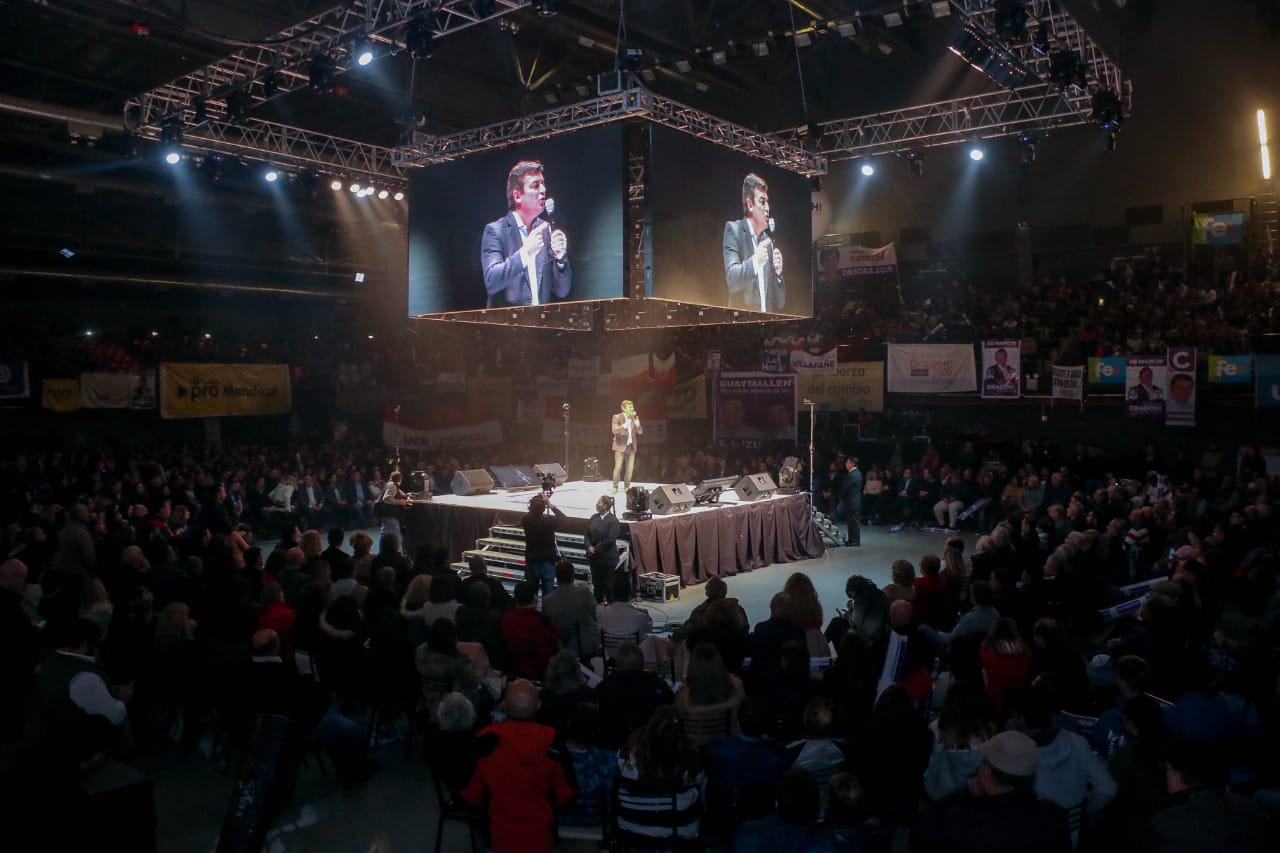 El encuentro comenzó pasadas las 20:30hs, en donde se destacó el impacatane escenario ubicado en el centro del Estadio, en un formato 360°. La gran cantidad de banderas, el jingle sonando y colores de los distintos partidos políticos que integran en espacio de Cambia Mendoza, enmarcaron una jornada única.