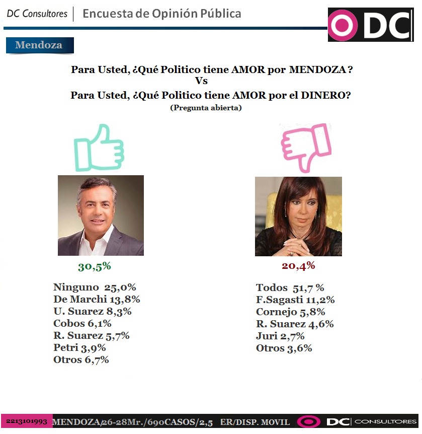 Y continuando con la pregunta abierta «¿Qué político tiene amor por el dinero?» surge inmediatamente entre los mendocinos la figura de la vicepresidenta Cristina Fernández de Kirchner.
