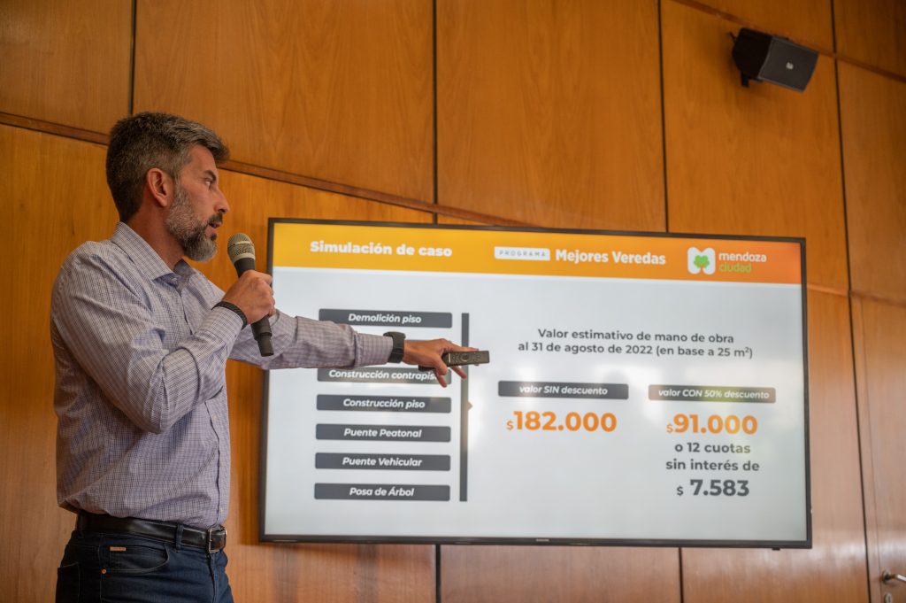 Aquellos vecinos que quieran reparar la vereda por su cuenta podrán acceder a un descuento del 40% respecto de la tasa por servicio a la propiedad raíz (o del 60% si acreditan la compra de materiales en locales comerciales habilitados de la Ciudad de Mendoza), por 12 meses respecto del año fiscal siguiente a la ejecución de las obras, así como de los aforos de construcción y tasa de actuación municipal.