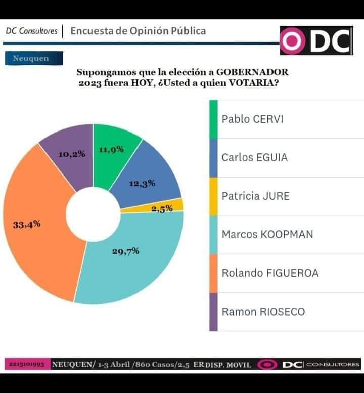Mientras que el periodismo y las encuestadoras operaban a favor del oficialismo del Movimiento Popular Neuquino, la unica encuesta que acertó en las elecciones fue la consultora DC Consultores, liderada por Anibal Urios, que realizó una medición a principios del mes de abril boicoteada por muchos operadores neuquinos, y reveló que el candidato Rolando Figueroa ganaría con el 33,4% de los votos. Los resultados obtenidos han sido realmente destacables, pues han permitido prever el resultado final de las elecciones con una diferencia del 2%.
