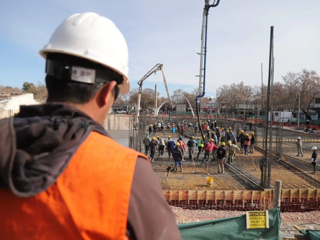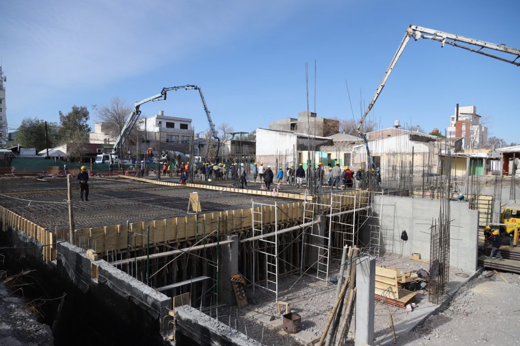 Con el llenado de losas sobre el techo del estacionamiento subterráneo, avanza una nueva etapa de la megaobra que el Municipio de San Rafael construye donde funcionó la antigua terminal de ómnibus.