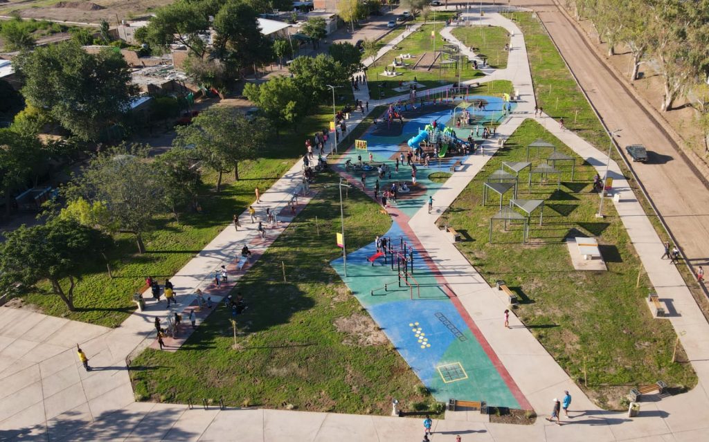 El pasado fin de semana, el intendente de Luján de Cuyo Esteban Allasino, encabezó la inauguración formal del espacio público sureño, que beneficiará especialmente a los más chicos de la localidad. Los trabajos se realizaron con un concepto innovador en accesibilidad e integración, tanto en los ingresos como en los senderos y juegos. Además, se integró un espacio recreativo y deportivo de primer nivel.