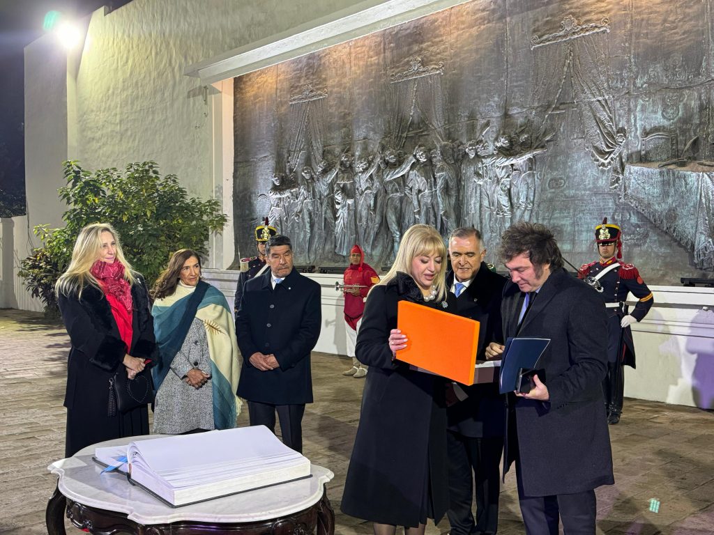 La vicepresidenta Victoria Villarruel fue la gran ausente en ese ritual de un pacto, se dijo desde Protocolo que estaba enferma y saliendo de una gripe, en menos de 12 horas la vimos radiante subida a un tanque de guerra y a los gritos con un tapado rojo brillante que a esta nota le da un toque misterioso más, solo eso…creo.