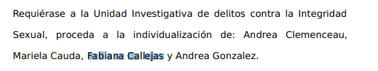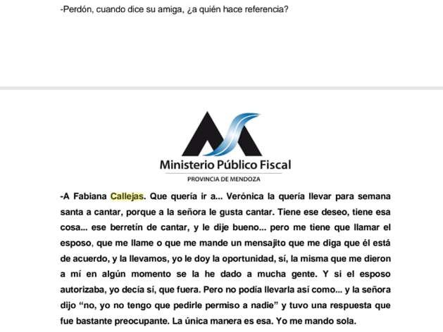 Para completar la información; el tema no es tan grave: a Fs. 21 de la declaración de Garay nombra a la Sra. Callejas que quería triunfar en el mundo del espectáculo y le pedía una mano a la denunciante. La Fiscal ordenó que se individualice quién es Fabiana Callejas y será citada a declarar.