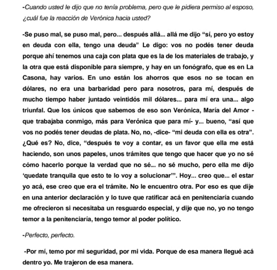 En varios momentos de las declaraciones en el expediente Cacho Garay, sostiene un armado de la causa, a la Sra. Callejas, esposa del ex Gobernador Rodolfo Suarez también la nombra en una segunda oportunidad, rematando que el solo le tiene miedo al “Poder Político” y rápidamente interviene la fiscal cortando tajante con dos palabras “Perfecto, perfecto” cortando el relato que después de esa interrupción, porque no es una pregunta, sino un interruptus continua hablando Cacho Garay.