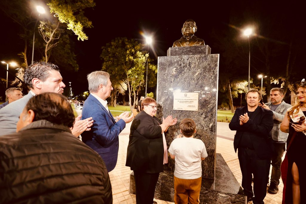 Además de la plaza, también fueron inauguradas las obras en la rotonda “Héroes de Malvinas”, que ahora tiene una renovada fuente de agua, verde césped e iluminación led.