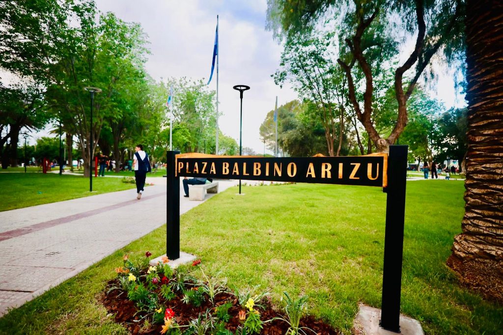 La plaza Balbino Arizu es una de las más grandes de los distritos sanrafaelinos. Fue intervenida por el Municipio en el marco del Programa de Renovación de Espacios Públicos y hoy luce totalmente renovada, con flamante parquizado, amplios caminos y veredas, bancos para esparcimiento, potentes luces led y diferentes tótems con información histórica del distrito. En el centro, se destaca el renovado busto de “Don Balbino”, además del sector de mástiles que tiene las banderas de Argentina, Mendoza y San Rafael.
