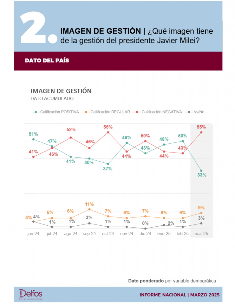 Pero en las últimas semanas, se realizó en la provincia de Córdoba un informe de opinión pública de la agencia Delfos, una de las consultoras de confianza del cordobesismo, que muestra que la imagen de Milei se desploma, cayendo 17 puntos porcentuales respecto de febrero pasado, pasando del 50% al 33% de imagen positiva. Pero en esa caída también se lo lleva puesto a su aliado, el gobernador cordobés Martin Llaryora que cayó 4 puntos en su imagen. Las razones: El Presidente por el escándalo $LIBRA y el gobernador por un fuerte aumento del impuesto inmobiliario tanto urbano como rural.
