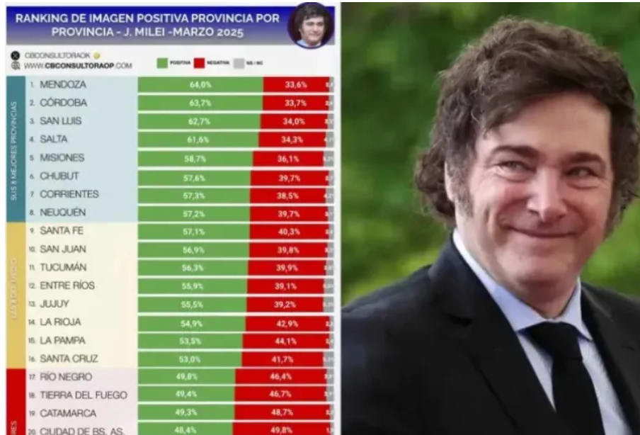 Con el correr de los meses de la gestión de Milei ya como presidente, tanto Mendoza como Córdoba eran las provincias que lo tenían con mejor imagen al león libertario, según la mayoría de las consultoras nacionales y locales.