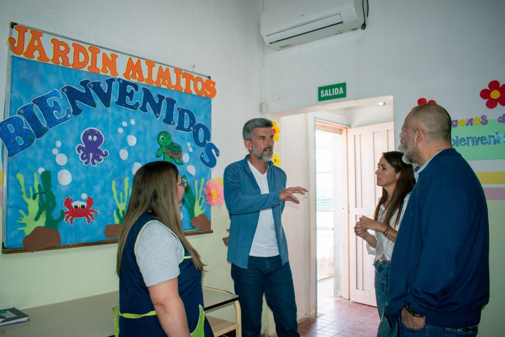Posteriormente, el intendente visitó el jardín maternal Mimitos, situado en el barrio Flores, donde grafiteros que fueron encontrados responsables de vandalizar la vía pública, para evitar ser sancionados, están pintando tanto los muros internos como los externos, poniendo en valor este espacio tan importante para el municipio.