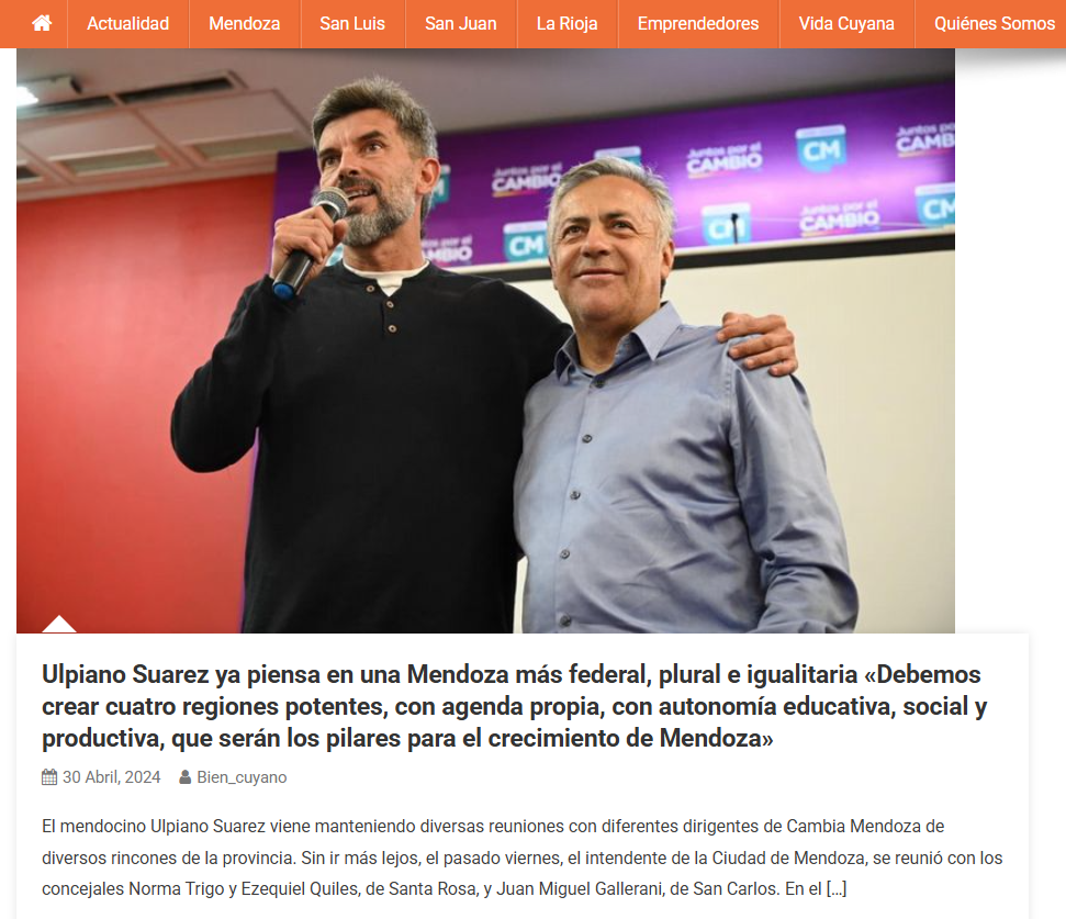 No obstante, uno de los nombres que asoman para la gobernación de Mendoza y actual intendente de la capital, Ulpiano Suarez, viene hablando del tema desde hace años. Es más, sorprende y hoy cobra relevancia sus anticipadas declaraciones y acciones que realizaba hace dos años atrás y que BienCuyano describía en una nota el 30 de abril de 2024.